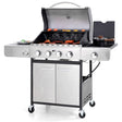 Sophia & William 4-Burner Gas BBQ Grill with Side Burner and Porcelain-Enameled Cast Iron Grates 42,000BTU Outdoor Cooking Stainless Steel Propane Grills Cabinet Style Garden Barbecue Grill, Silver