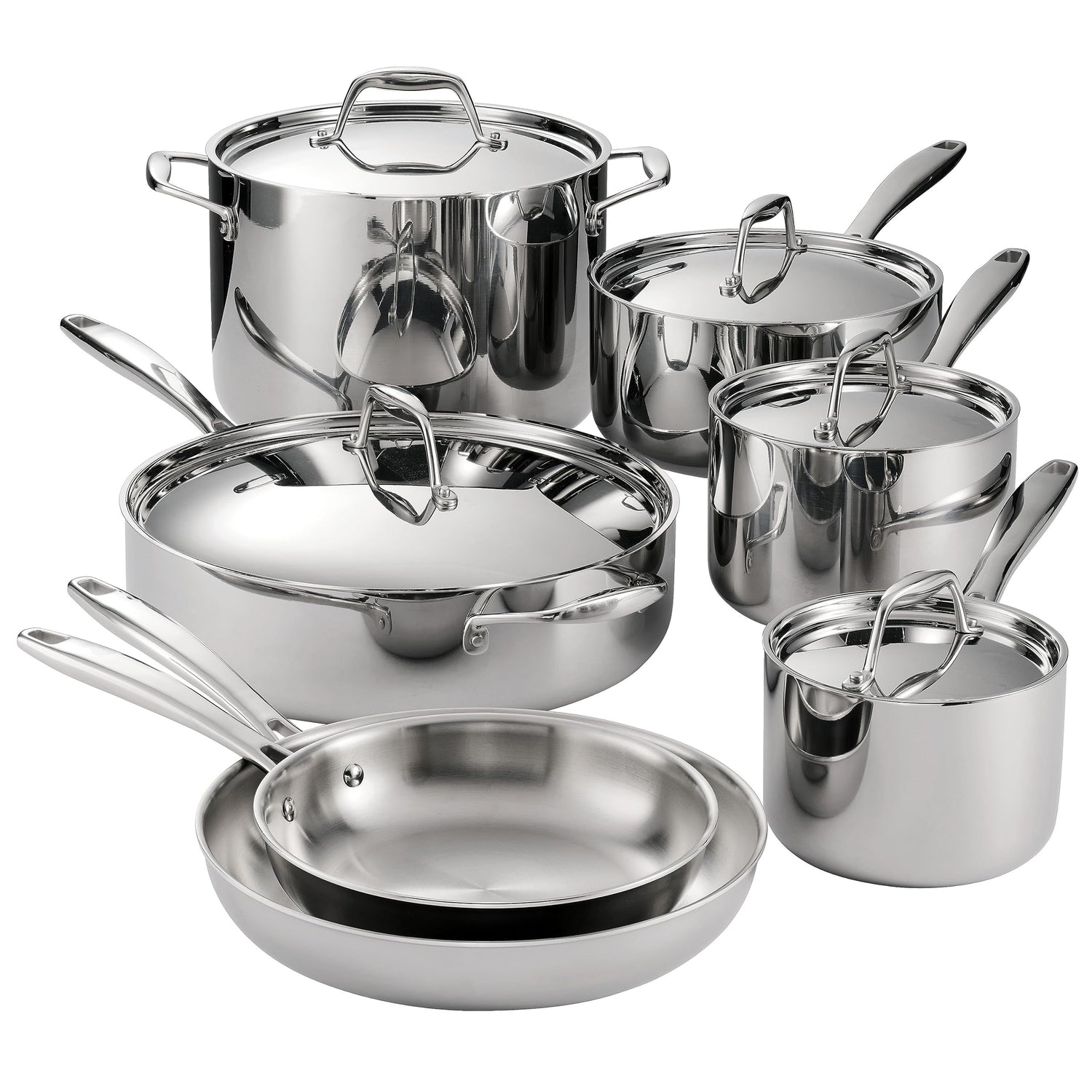 Tramontina 80116/249DS Gourmet Stainless Steel Induction-Ready Tri-Ply Clad 12-Piece Cookware Set, NSF-Certified, Made in Brazil